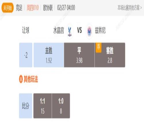 竞足 周四010欧协联水晶宫VS兹林尼