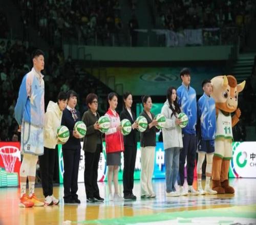 女性代表在中场休息期间获赠签名篮球。当日是“三八”国际妇女节。 新华社记者 孟永民 摄