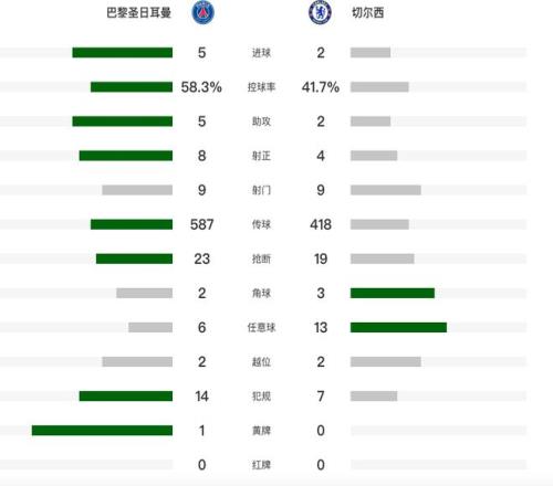 第39分钟,詹姆斯下底传中,帕尔默的射门被挡出,巴黎立即发动快速反击,登贝莱一个人戏耍切尔西防线,没有选择传给阿什拉夫,而是自己将球打进。