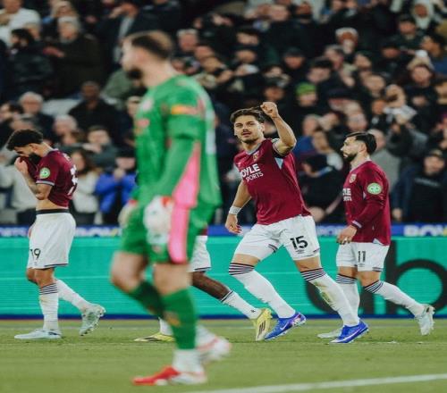 但仅仅过了4分钟西汉姆联队就扳平了比分,右侧角球开出后,多纳鲁马没有碰到皮球,后点的马夫罗帕诺斯高高跃起头球建功,帮助铁锤帮将比分追至1平,半场结束前,曼城前场抢断后迅速形成了反击,哈兰德禁区内倒三角回做,但塞梅尼奥的射门擦着立柱出了底线。