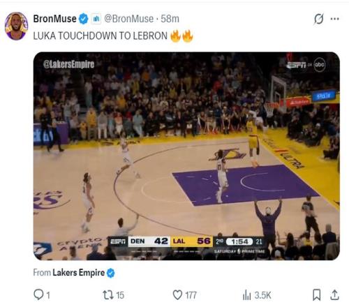 北京时间3月15日,湖人127-125拒绝掘金逆转。这场比赛湖人一度领先17分之多,可在第三节崩盘被掘金扳平,末节掘金的三分开了很快反超,詹姆斯连续两次倒地扑抢球权竭尽全力,里夫斯两罚一中+抛投绝平进入加时,东契奇在加时赛完成了后仰准绝杀,詹姆斯甘愿当双巨的辅佐。
