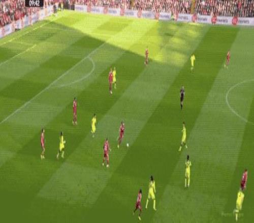 半场结束,两队加起来只有10次射门,利物浦1-0暂时领先。