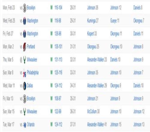 北京时间3月17日,NBA常规赛,老鹰124-112大胜魔术拿到10连胜。此役老鹰一度领先魔术29分之多,虽然末节魔术打出了一波小高潮但前面的坑太大还是无法追回,约翰逊24+15+13再度拿到三双。