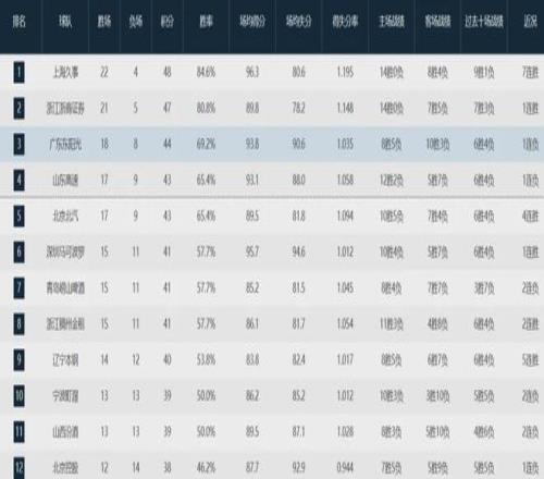 当前CBA战绩排名如下: