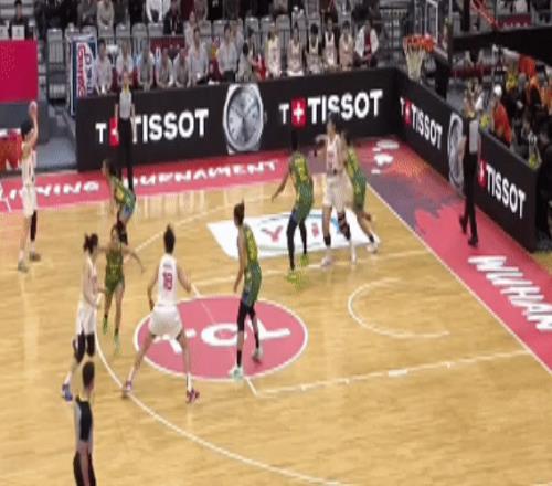 随即,下一个回合,王思雨变线突破,上篮拿分制造2+1!