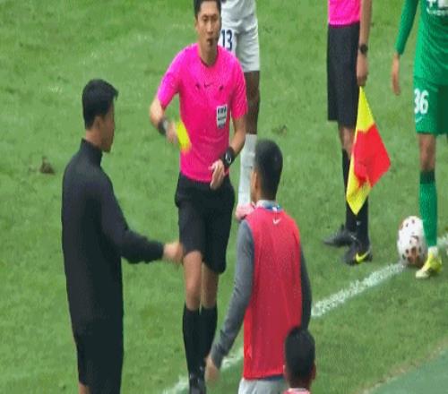 随后,王世龙起身表示不满,也被马宁出示黄牌。马宁还右手一指,让王世龙回到替补席。