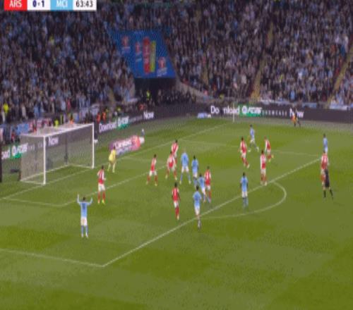 第64分钟,努内斯传中,奥赖利头球梅开二度,曼城2-0领先阿森纳!