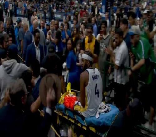 勇士队的老将德拉蒙德-格林赶紧上前用毛巾盖住了穆迪的膝盖,并且搂住了穆迪的头,对他进行安抚。穆迪很快被医护人员抬上担架床,送去医院接受检查和治疗。
