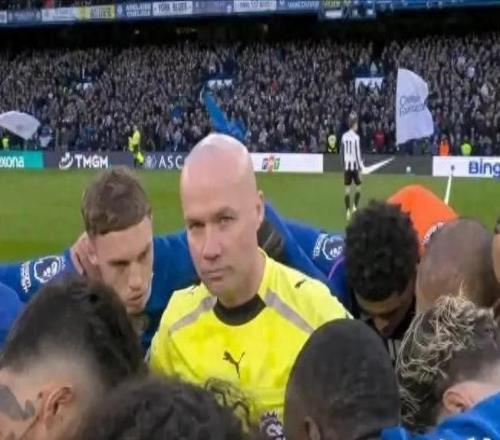 英超赛场现罕见一幕:裁判“站C位”成切尔西赛前动员焦点