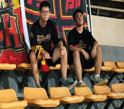 甘锐与黄希扬在德比战合影留念:我们都不再年轻