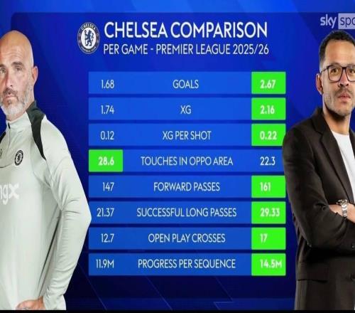 切尔西的8项进攻数据中,罗塞尼尔有7项优于马雷斯卡