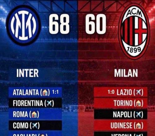 差距反而拉大!意甲积分:国米8分领跑米兰输球仅领先第三名1分
